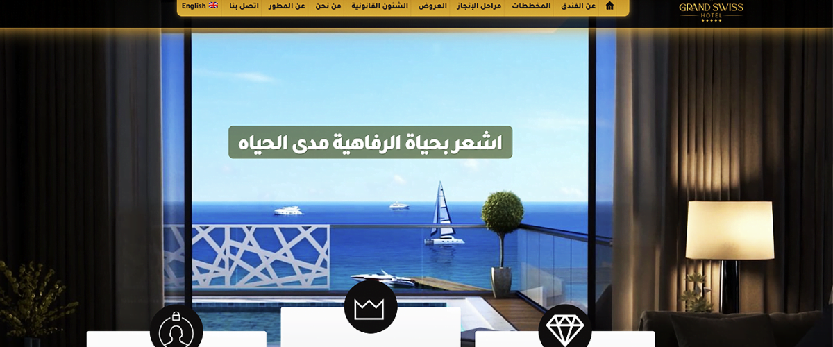 تصميم موقع شركة مقاولات واستثمار عقارى لمشروع فندق جراند سويس